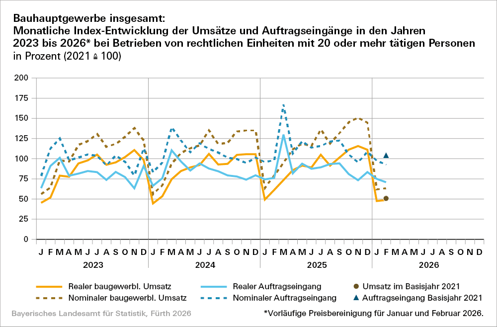„Bauhauptgewerbe in Bayern im Februar 2026“ (Bestellnummer: E2100C 202602).