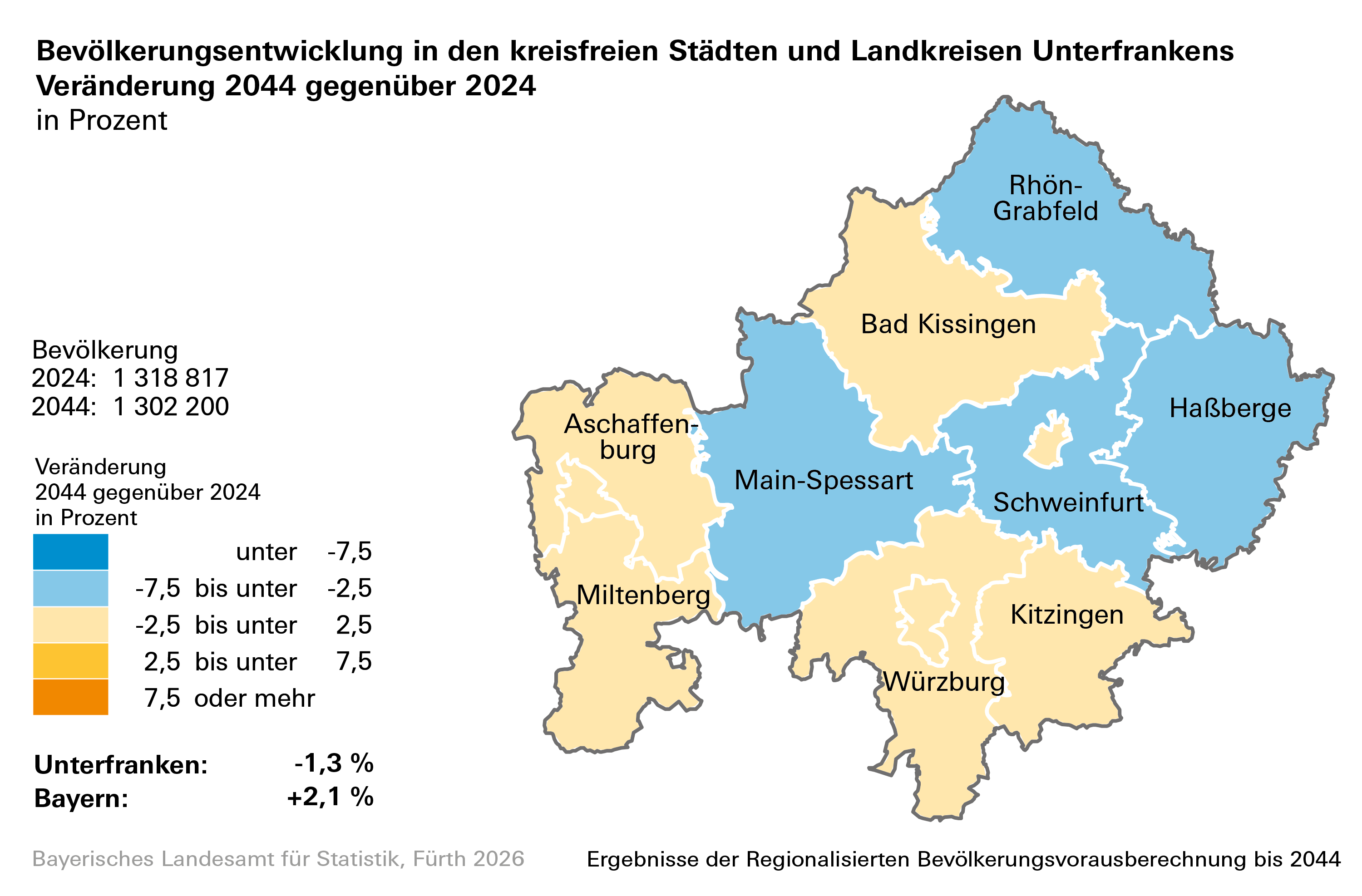 Ausführliche Ergebnisse zur Regionalisierten Bevölkerungsvorausberechnung enthält der Statistische Bericht „Beiträge zur Statistik Bayerns, Heft 559: Regionalisierte Bevölkerungsvorausberechnung für Bayern bis 2044“