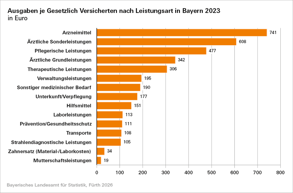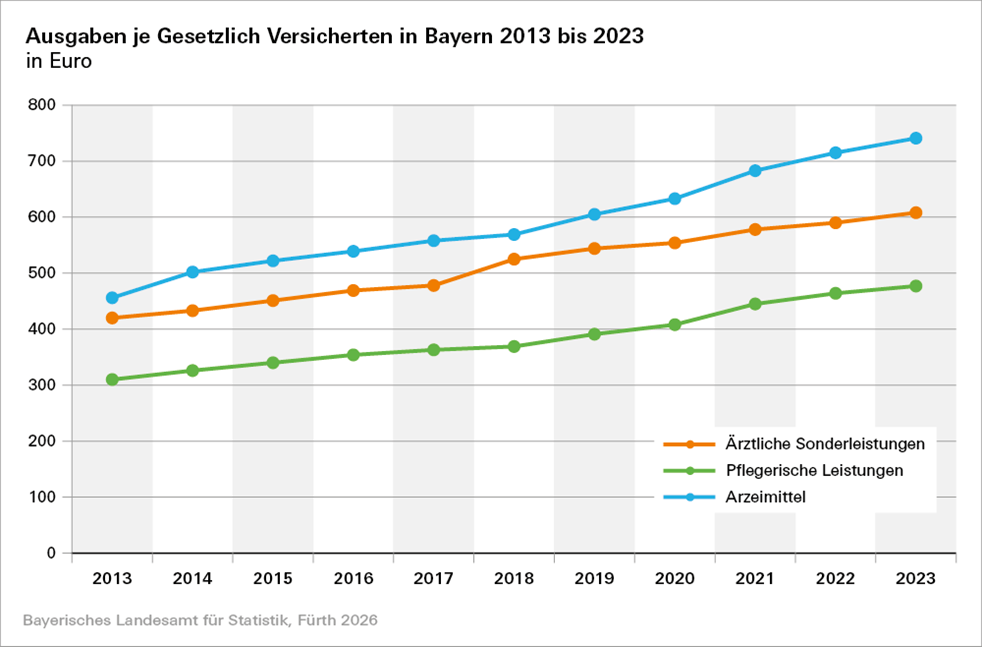 Gesetzliche Krankenversicherung in Bayern: Ausgaben für Arzneimittel, ärztliche Sonderleistungen und pflegerische Leistungen stark gestiegen