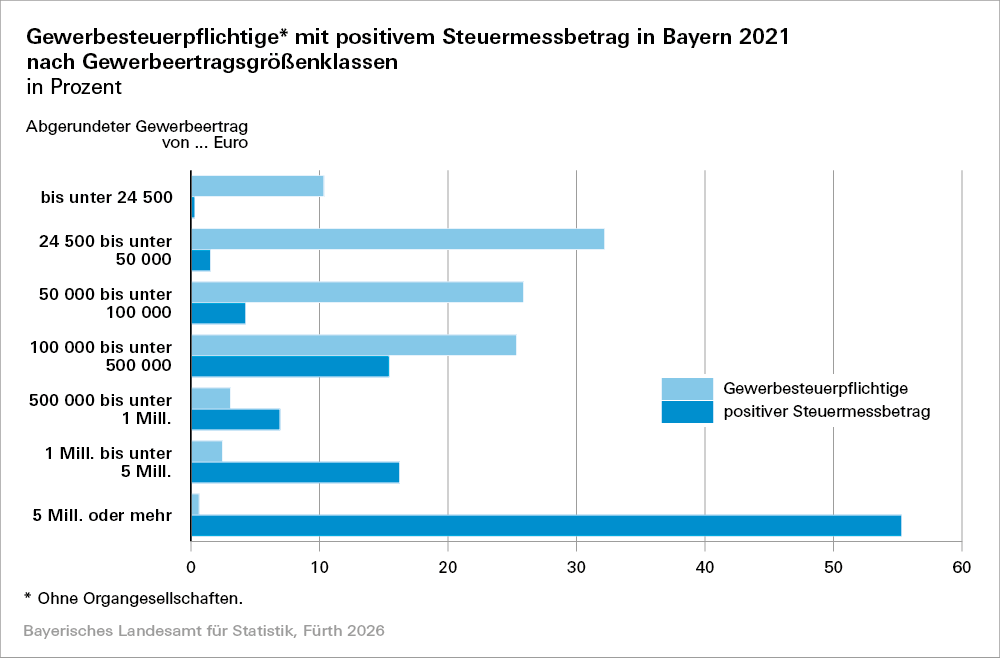 In der Gewerbesteuerstatistik werden alle in Bayern ansässigen gewerblichen Unternehmen mit deren inländischen Betriebsstätten erfasst, deren Veranlagung zur Festsetzung eines Steuermessbetrags führte. Es handelt sich genaugenommen um eine Gewerbesteuermessbetragsstatistik.